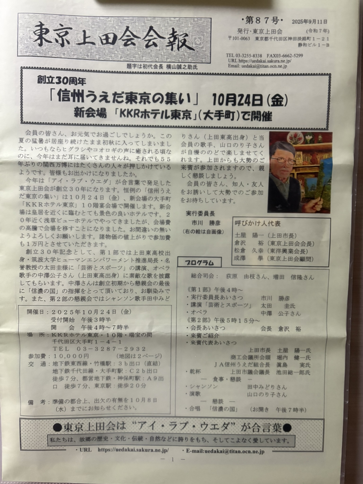創立30周年「信州うえだ東京の集い」KKRホテル東京(大手町)で開催。